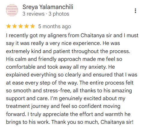 Dr. Chaitanya has successfully treated over 500 patients with aligners, helping them achieve their perfect smile.